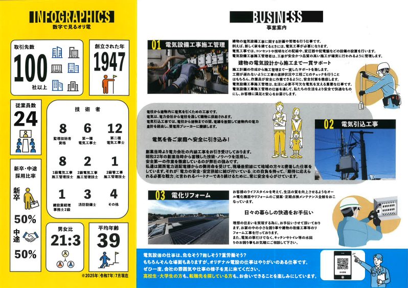 【求人】株株式会社オリヂナル電設《電気工事施工管理・電気工事》募集!★26年卒 2025.09.03★積極的に募集中★電気設備をもっと便利に、もっと安全に。電気で「未来」と「笑顔」を照らそう。■ 建設業 ■ 《 募集職種 》電気工事施工管理(建物の電気工事の計画や管理を行う仕事)電気工事(電柱から建物内に電気っを引く仕事)《 勤務地:京都府 》《 募集学科:全学科 》▶︎採用情報ページ ▶︎企業HP⇣⇣ 会社情報 ⇣⇣