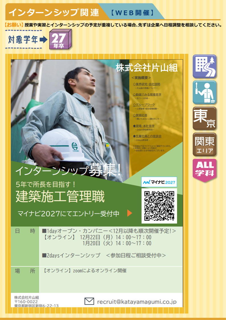 《 募集職種 : 建築施工管理/設備施工管理/営業/経理・財務 》