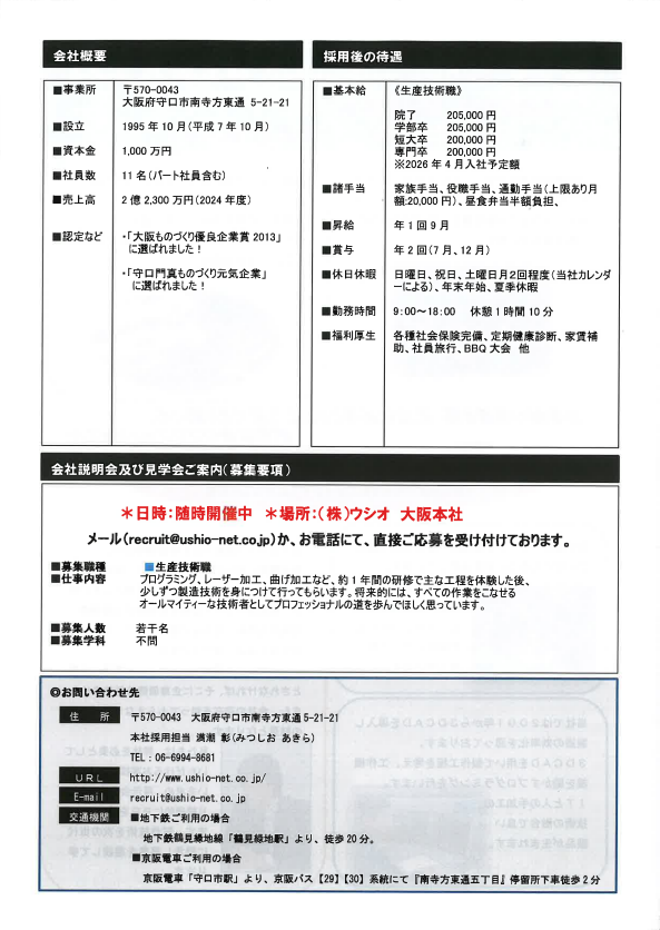 私たちは、弊社を必要としていただけるお客様との出会いを求め、展示会やHPにより積極的にPRを続けています。今後も社会に必要とされる存在として、事業を継続していくためには、試作技術を若い世代に継承していくことが重要です。お客様から、本当に必要とされていることを実感できる試作事業を一緒に進めていきましょう。