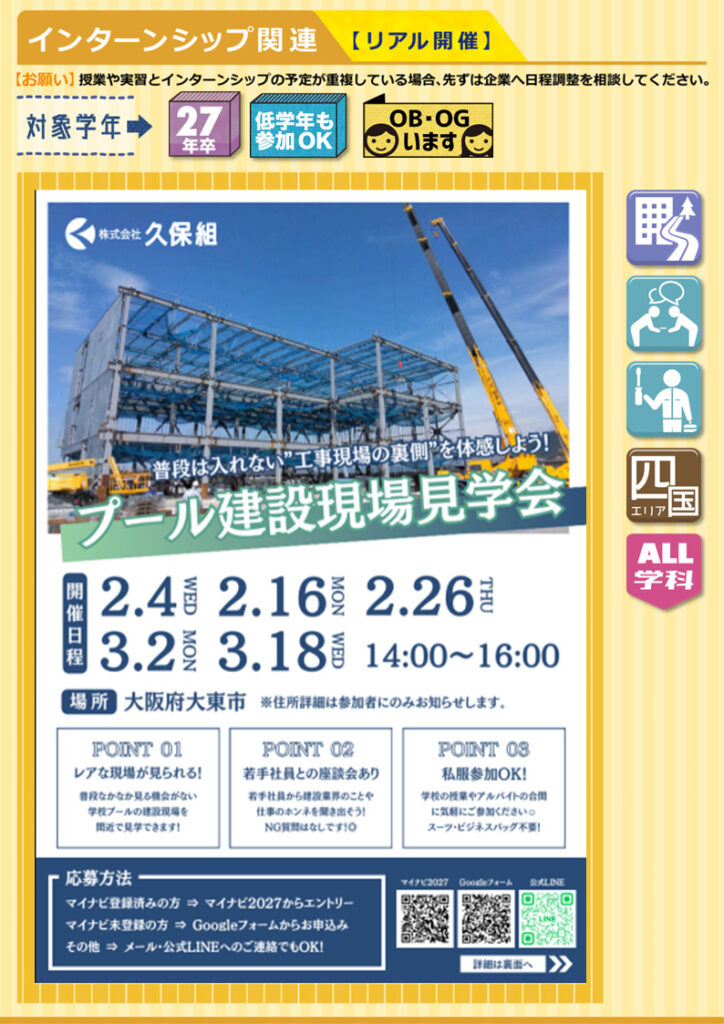 【インターンシップ&仕事体験 】情報27年卒☆Web開催あり福祉・サービス・保険 系接客・営業・教育事務・管理・企画 系大阪中国東京近畿全学科文系P・B・C・EスポーツT機械F交通G都市K電子情報L情報システムH建築M環境理工V