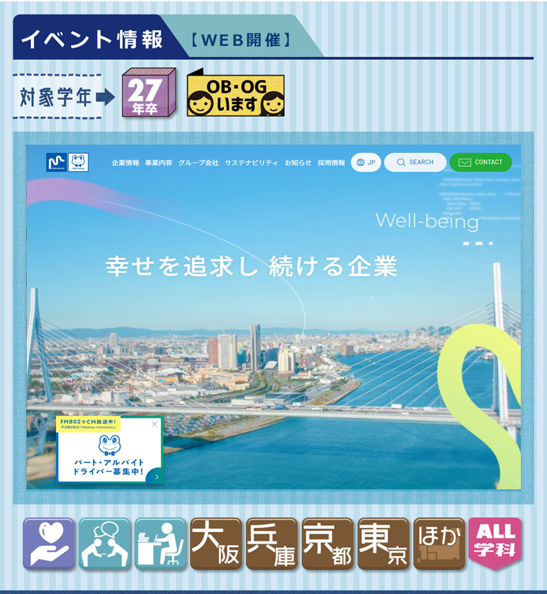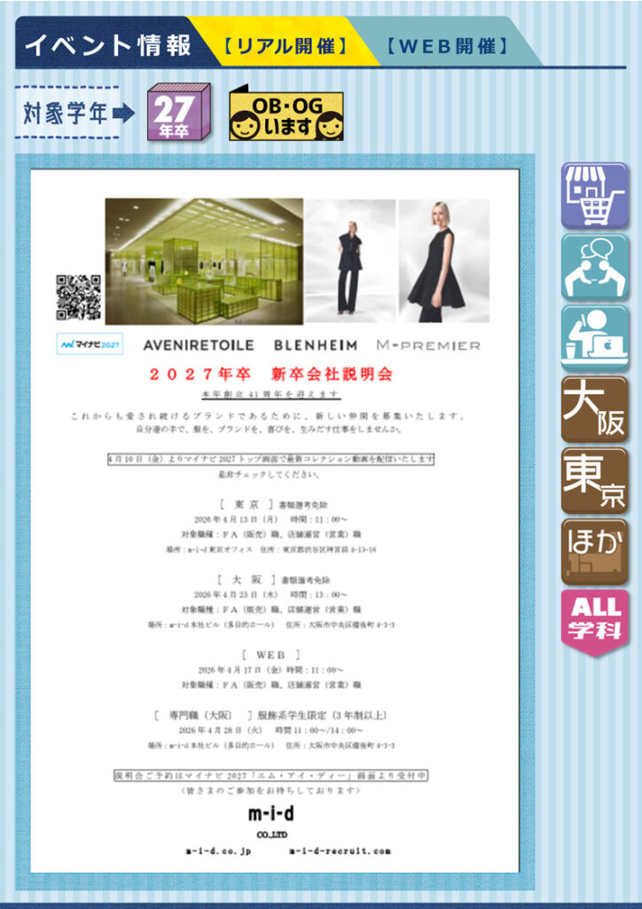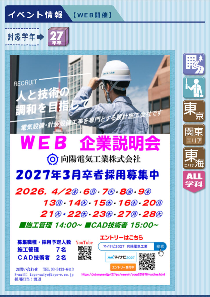27年卒☆Web開催あり福祉・サービス・保険 系接客・営業・教育事務・管理・企画 系製造・技術・施工管理・設計 系大阪東海東京全学科文系P・B・C・EスポーツT機械F交通G都市K電子情報L情報システムH建築M環境理工V