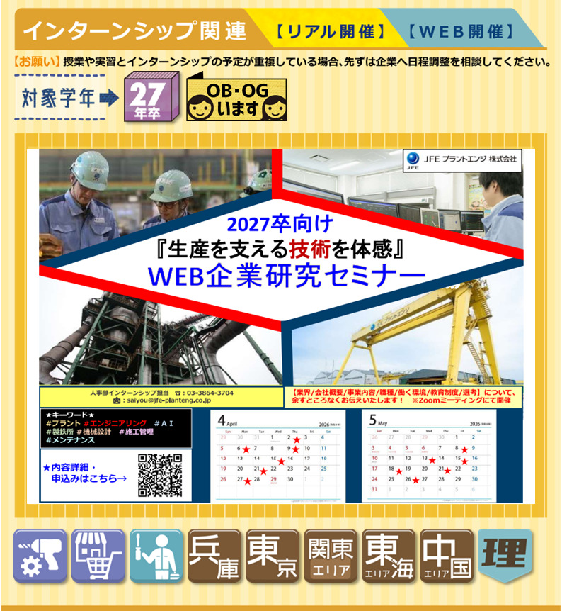 28年卒☆Web開催あり流通・販売製造IT系(PG・SE・クリエーター など)接客・営業・教育製造・技術・施工管理・設計 系中部大阪滋賀和歌山京都兵庫奈良ほか~その他の都道府県~関西関東東北北陸東海中国四国九州東京近畿全学科文系P・B・C・EスポーツT機械F交通G都市K電子情報L情報システムH建築M環境理工V