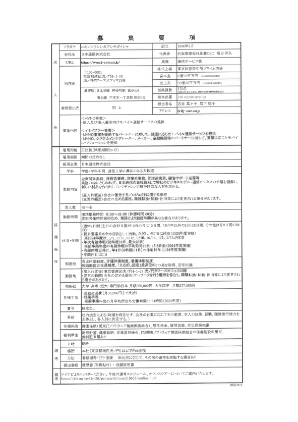 【求人】日本通信株式会社《企画開発業務・技術系業務・営業系業務・管理系業務・顧客サポート業務等》募集!★26年卒 2025.09.04★積極的に募集中★従業員数170名の東証プライム市場企業!業務の枠にとらわれず、日本通信の正社員として弊社のビジネスモデル・通信ビジネスの市場を理解し、新しい製品を作り出していくチャレンジ精神旺盛な人材を求めています。■ 情報通信 ■ 《 募集職種 》企画開発業務・技術系業務・営業系業務・管理系業務・顧客サポート業務等《 勤務地:東京都 》《 募集学科:全学科 》▶︎マイナビ2026 ▶︎企業HP⇣⇣ 募集要項 ⇣⇣