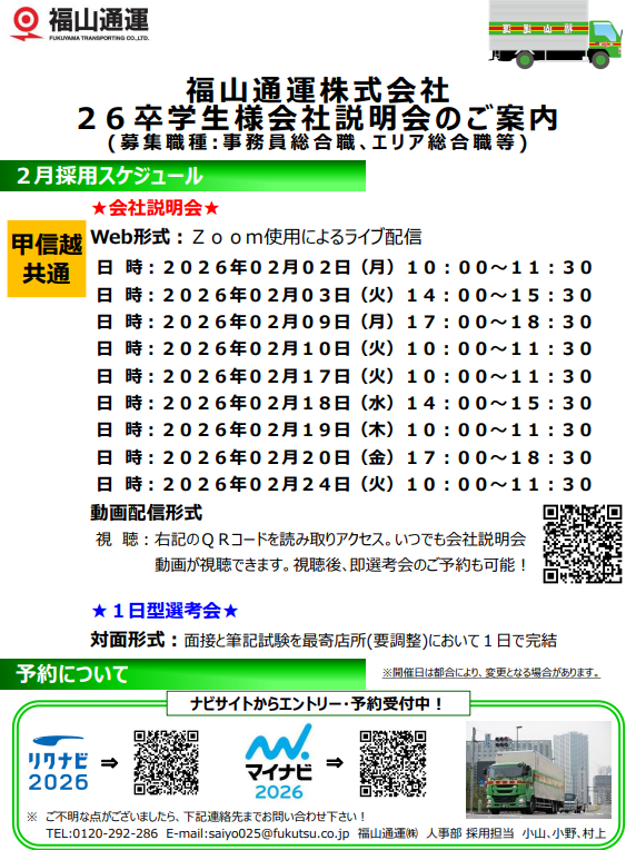 ✤WEB…<会社説明会>2/2㊊・3㊋・9㊊・10㊋・17㊋・18㊌・19㊍・20㊎・24㊋