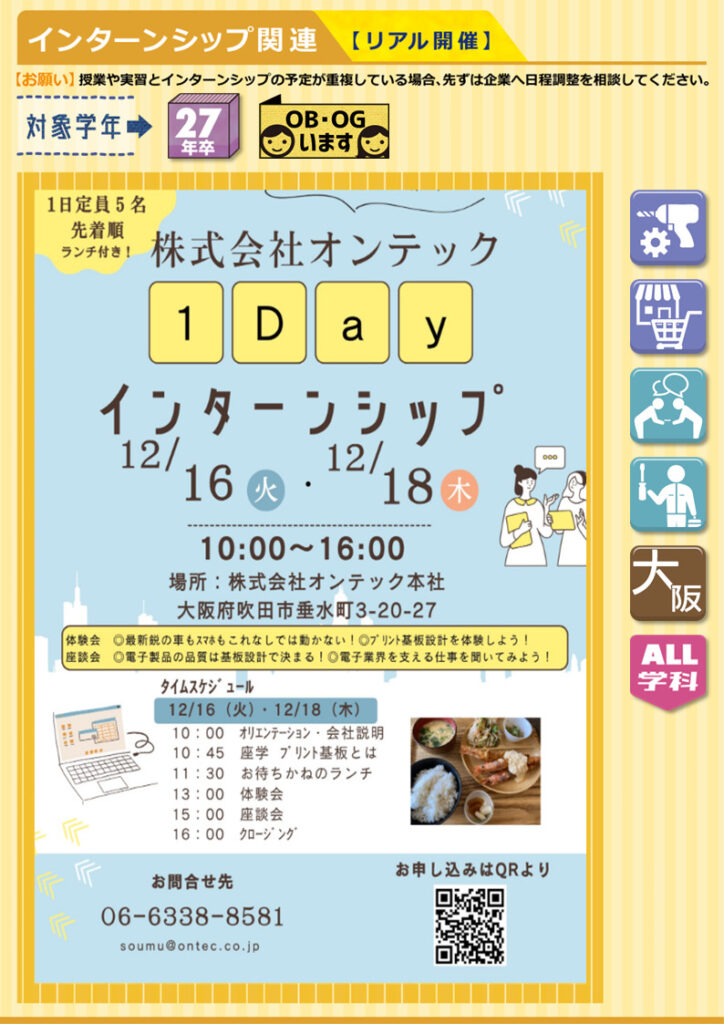 【インターンシップ&仕事体験 】情報27年卒☆Web開催あり土木・建築接客・営業・教育製造・技術・施工管理・設計 系事務・管理・企画 系和歌山大阪滋賀京都兵庫奈良関西全学科文系P・B・C・EスポーツT機械F交通G都市K電子情報L情報システムH建築M環境理工V